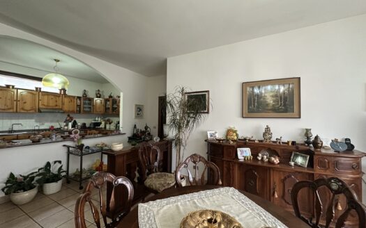 Una casa che si presta quindi ad essere adattata a molteplici scopi e configurazioni, per famiglie più o meno numerose, e che magari hanno necessità di spazi per lavorare da casa o per trovare il giusto spazio ai propri hobby; la proprietà dispone inoltre di un piano seminterrato con cantine e locale tecnico. E poi, come ciliegina sulla torta, un bel giardino che abbraccia principalmente due lati della casa, oltre alla parte sul retro da organizzare come area di servizio: a questa porzione dell’immobile è possibile accedere da un cancello laterale, accessibile da una piccola via interna. In questo spazio è possibile parcheggiare due/tre auto, eventualmente utilizzando il portico coperto che si affaccia su questo lato. La casa dispone di impianto fotovoltaico, attualmente a servizio del solo appartamento del piano superiore.