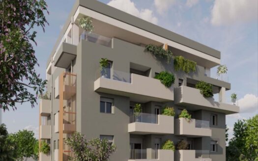 PARTE ESTERNA : Palazzina di nuova costruzione in stile moderno,. No barriere architettoniche all’ingresso del fabbricato. Cantina al piano seminterrato servita da ascensore, ampie zone verdi condominiali e private.