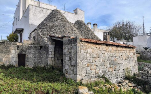 L’unità si compone di una zona a trulli (di mq 90 circa) composta da 4 coni, bagno e ripostiglio e un antico fabbricato adiacente e collegato (di mq 140 circa) composto da 4 ampi vani con volta a botte, bagno, antico focolare, grande magazzino, antica cantina e forno con anti forno. Il tutto con affaccio su caratteristica corte privata. Terreno agricolo di mq 2500 circa. Cisterna in comune.