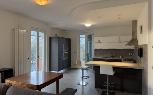 Ampio soggiorno ad angolo con secondo camino, uscita su balconata panoramica, vano armadi (ex cucina), due camere matrimoniali, secondo bagno finestrato nuovo