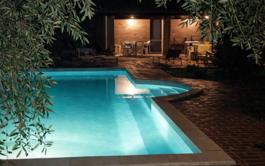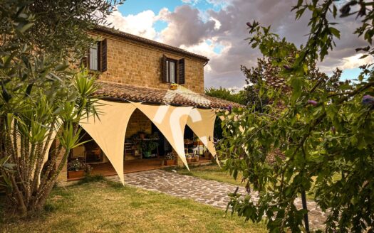 All’esterno, la casa è circondata da un giardino di circa 1000 mq, due annessi utili e un terreno agricolo di circa 2 ettari, completo di pozzo e uliveto.