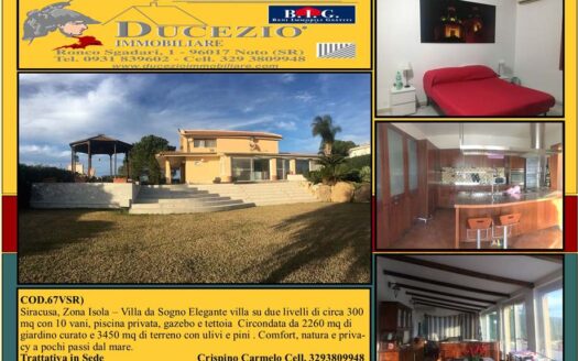 COD. 67VSR Vendesi a Siracusa, Zona Isola Splendida villa di circa 300 mq, suddivisa su due livelli. L’immobi Dettagli