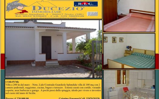 Cod. 5VM In vendita a Noto, nella zona Lido/Contrada Guardiola, a soli 200 metri dalla spiaggia, una splendida vill Dettagli