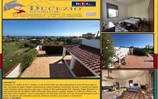 COD.183 v N C Proponiamo in vendita, in Via G. Martino, a Lido di Noto, una villa indipend Dettagli