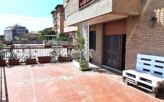 ingresso, soggiorno con camino e accesso diretto al terrazzo e al lastrico solare di circa 70 mq, cucinotto, bagno di servizio, disimpegno, due ampie camere matrimoniali e bagno con finestra e vasca.