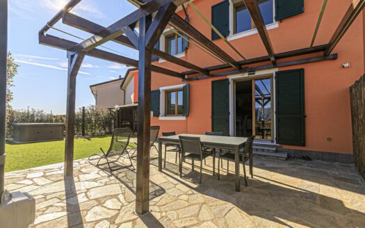 Completano la proprietà: un box auto di 43 mq di fronte a casa, un terreno/giardino irrigato di 720 mq a 100 mt da casa, un uliveto di 180 mq disposto su 5 fasce ed boschi vari per un totale di 5.490 mq.